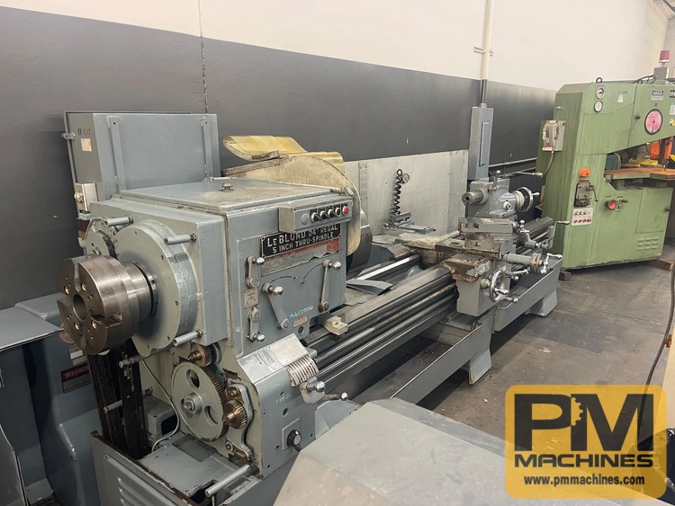 5" HOLE THROUGH, INCH THREAD, (3) STEADY RESTS, 20" FACE PLATE, TRAVEL DIAL, 21" 4-JAW CHUCK, 18" 3-JAW CHUCK